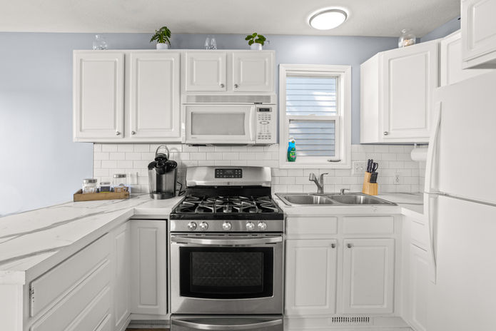 Spend quality time with your loved ones in the cozy living area, where you can relax on the comfortable couches, watch your favorite shows on the flat-screen TV, or engage in lively conversation. Step outside and soak up the sun on the deck, or gather around the fire pit and enjoy a night of s'mores and stargazing. With so much space and comfort, Cottage 1 is the perfect home away from home for your next vacation.
